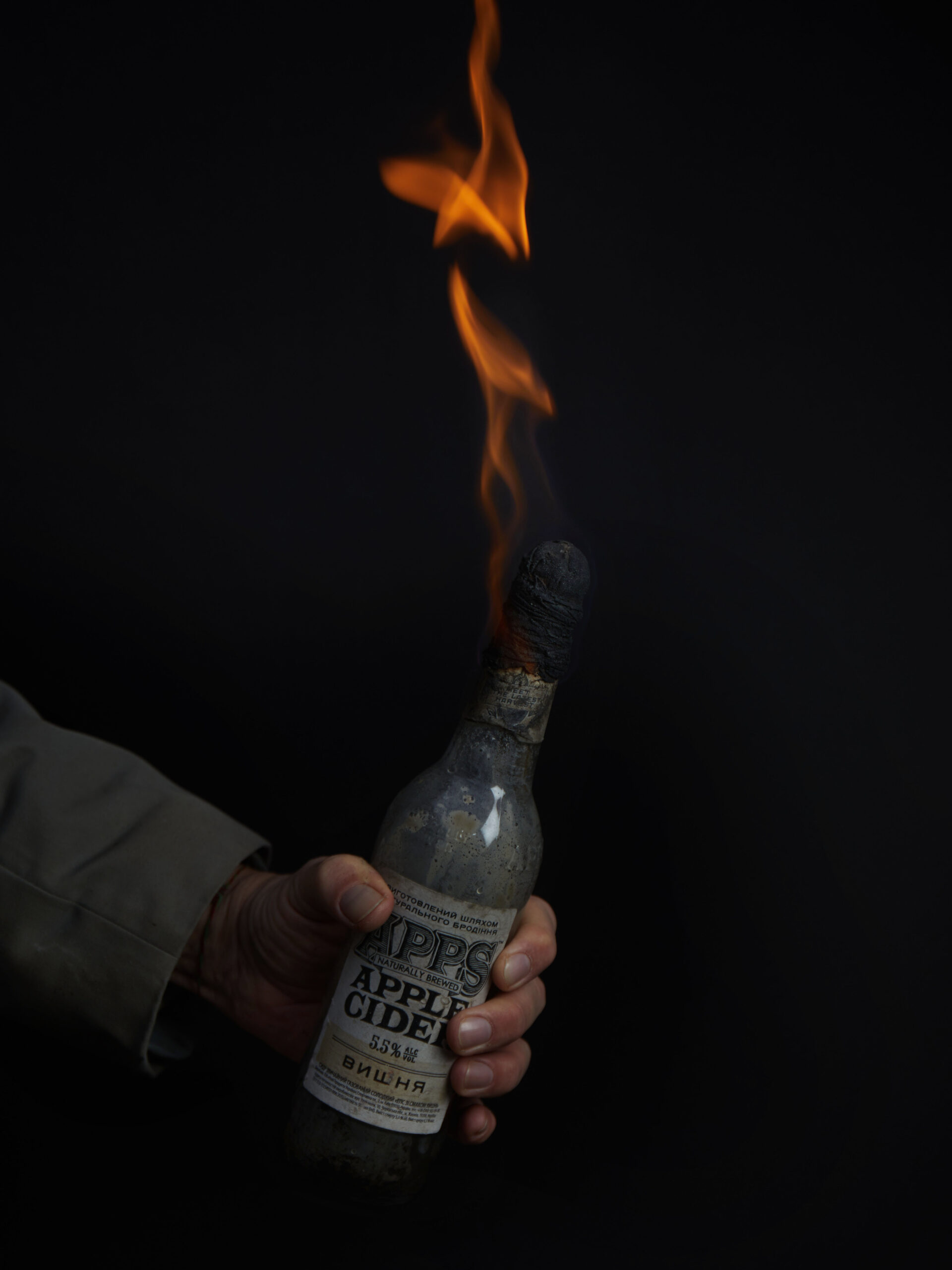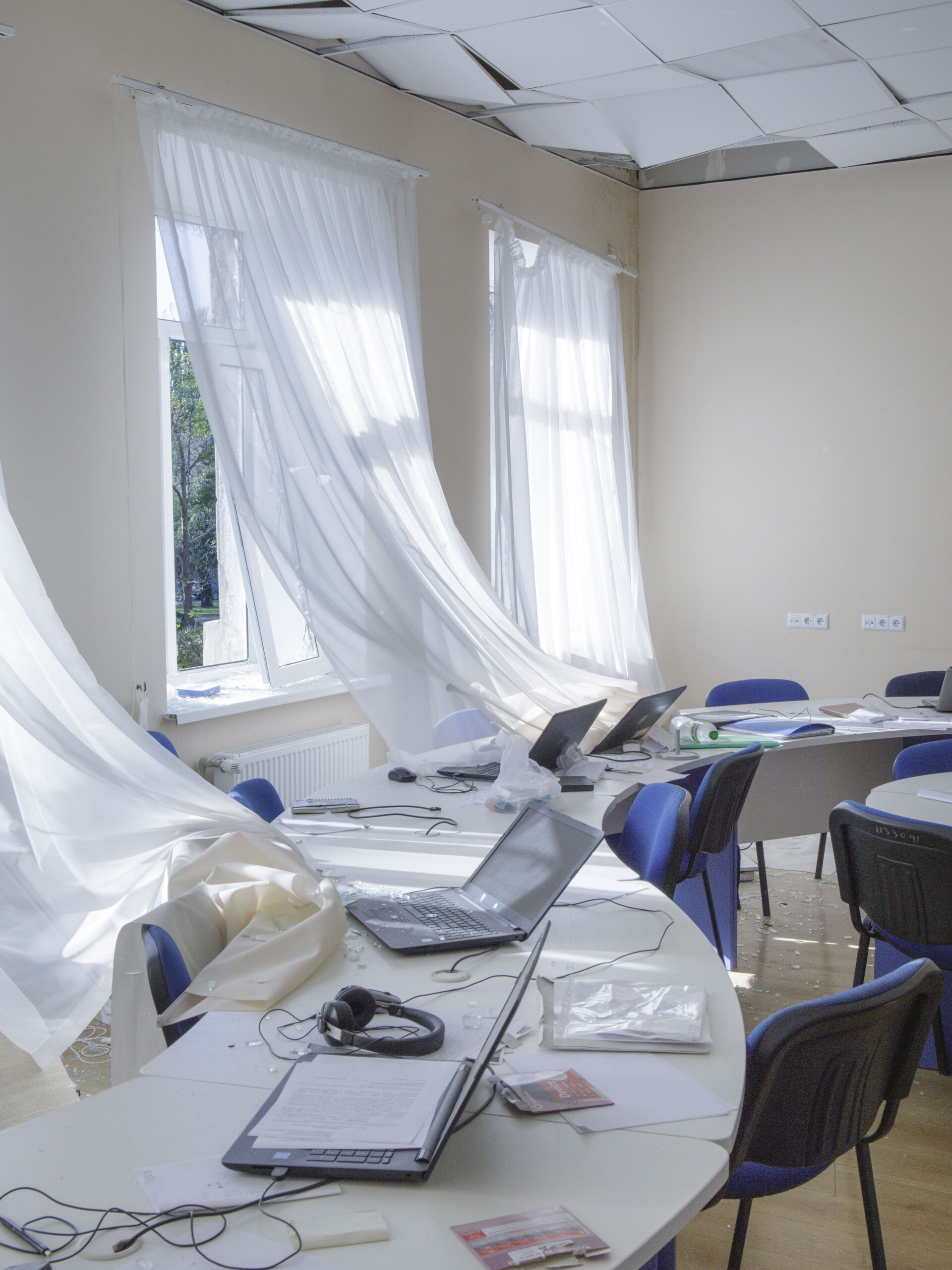 I went to see the Soviet-style apartment building that had been hit. Residents were cleaning up. Among them was a boy I had photographed earlier that week, wrapped in a Ukrainian flag by the river. Now he was carrying boxes of belongings down the stairs with a few others. When our eyes met, I gestured to ask if I could follow. He shook his head with a tired look and turned back up the stairs.
