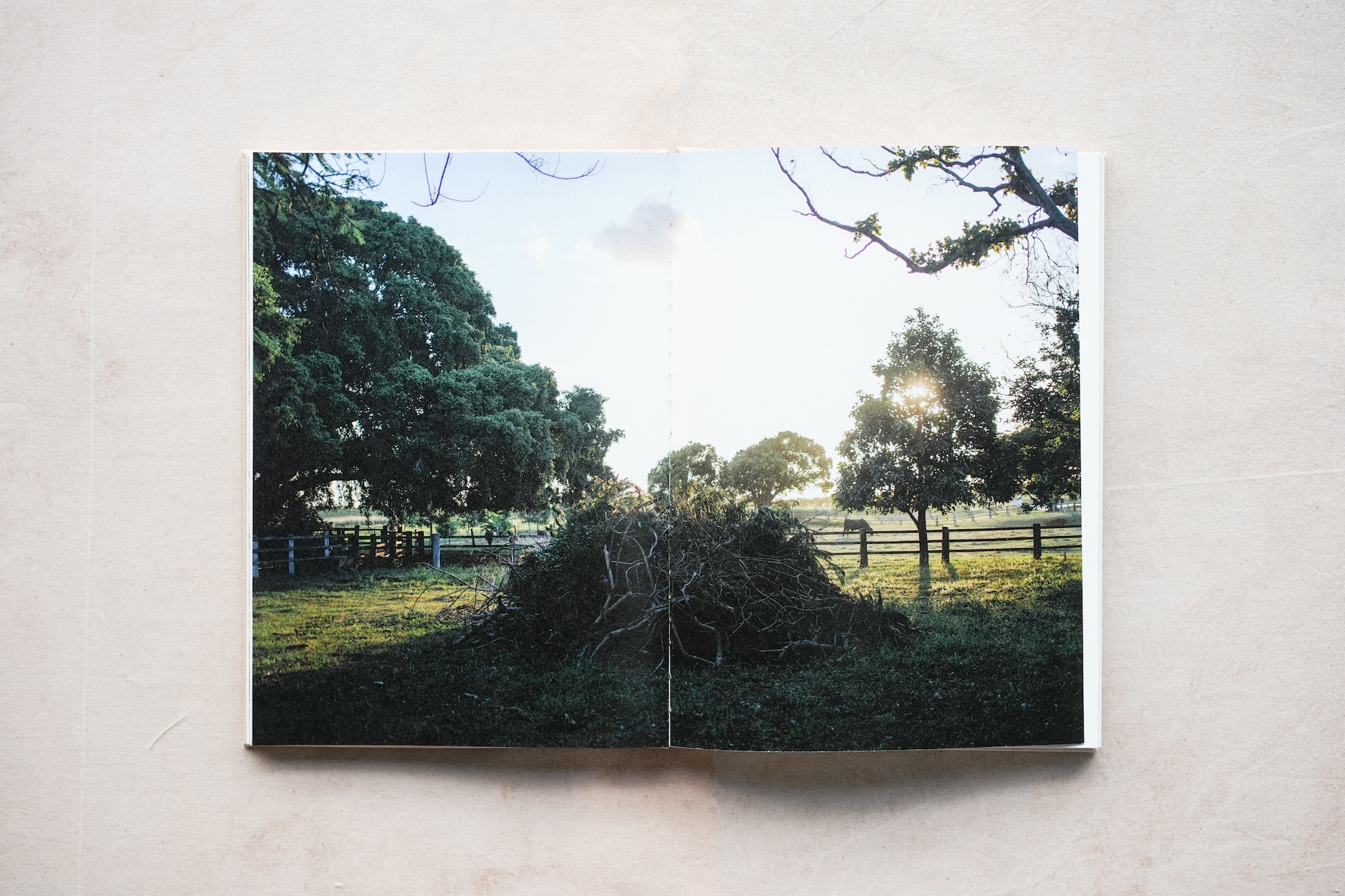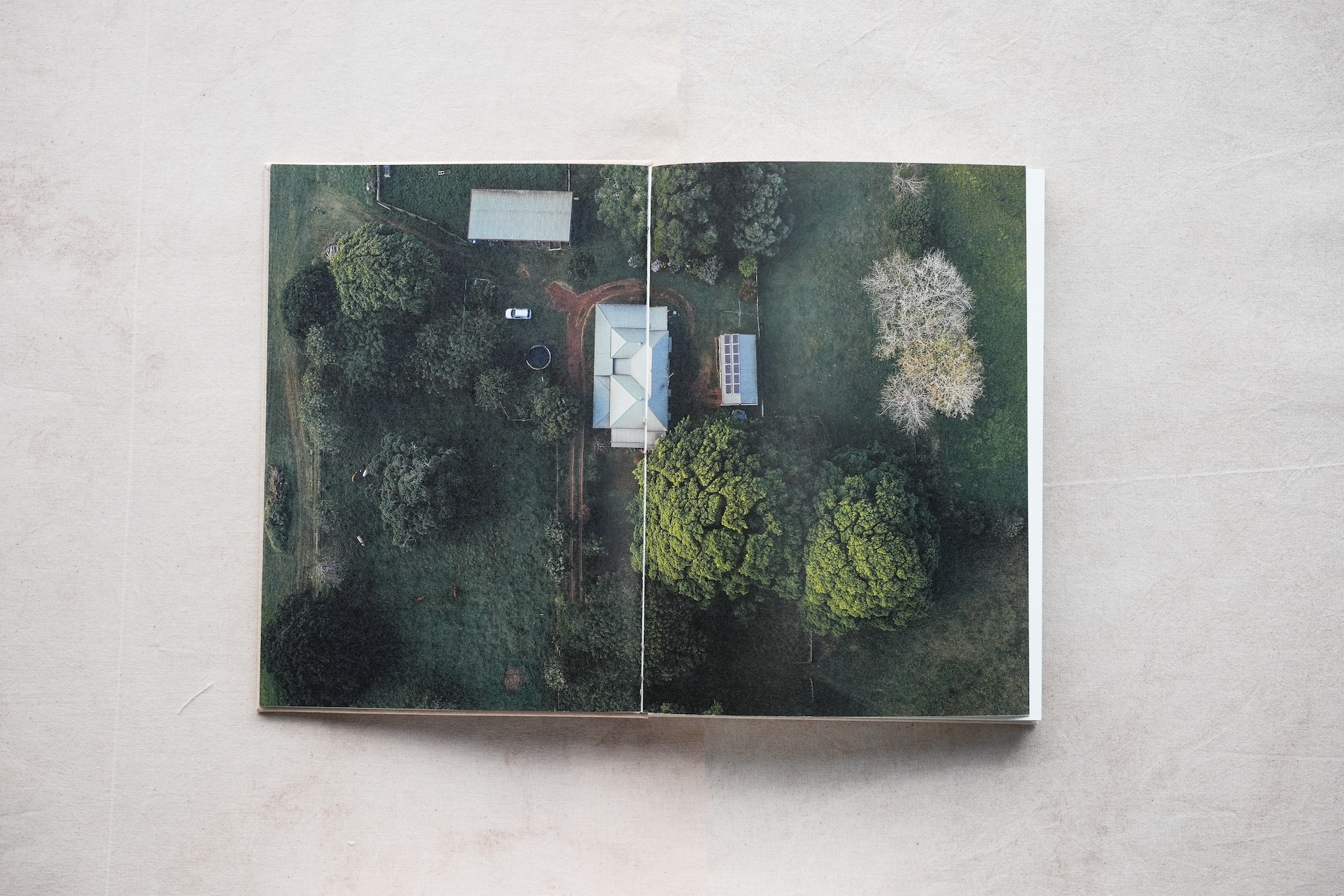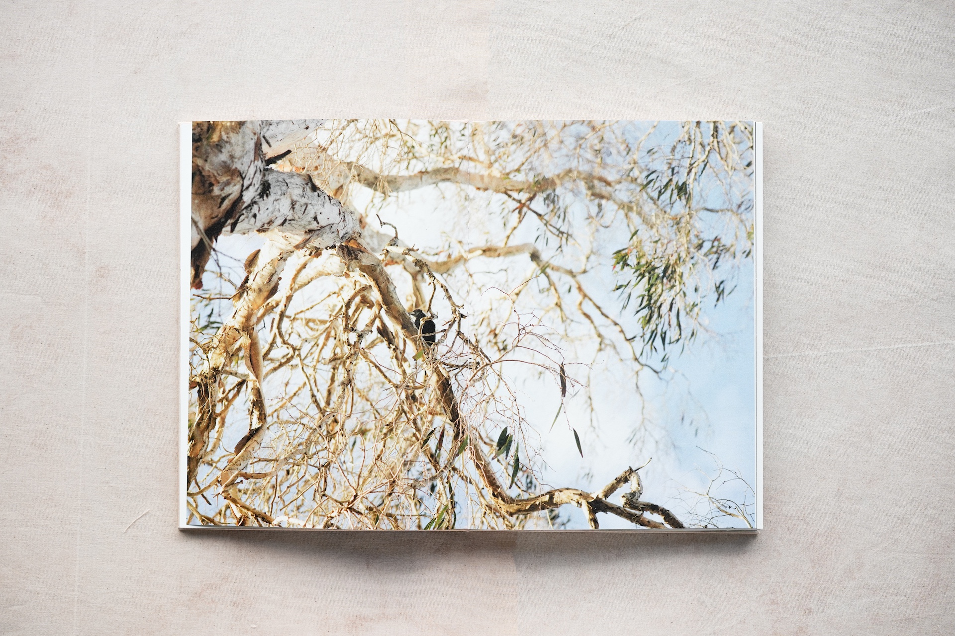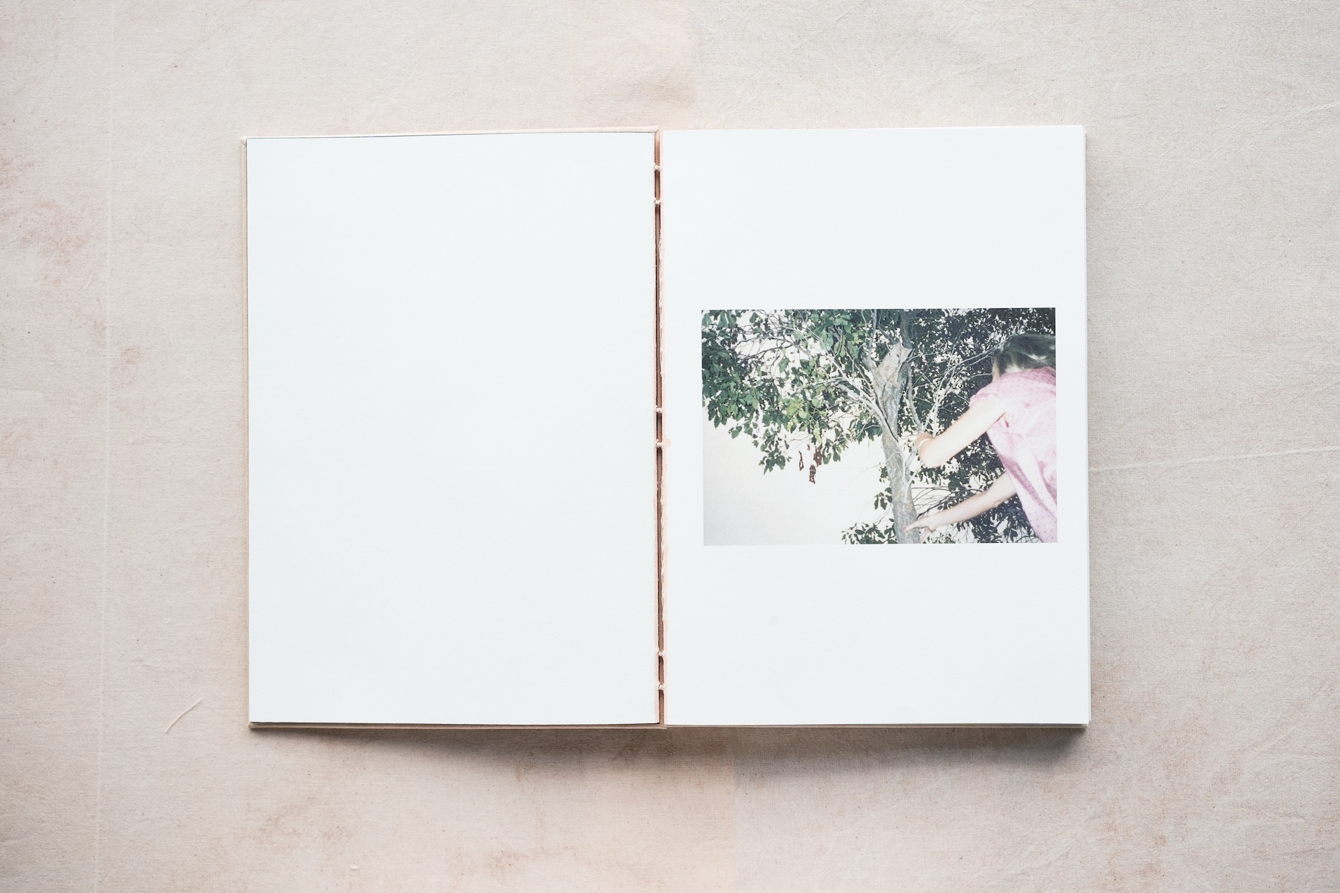 “The Weeping Fig” is conceived as a vessel for these fragments of memory — a B5-format artist book produced in an edition of 55. Its cloth cover and binding thread are hand-dyed from the berries of weeping fig trees; the pages combine laser printing and inkjet, with a section printed on thin, softly translucent paper. Through each structural and material decision, these memories slowly crystallise into the physical form of the book.